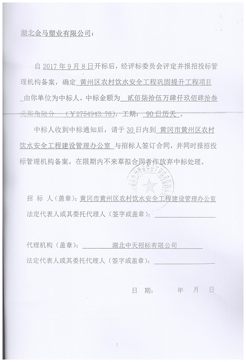 公司新聞 網(wǎng)站首頁 > 公司新聞 黃岡黃州區(qū)農(nóng)村飲水安全工程鞏固提升工程項(xiàng)目 2021-03-24 閱讀 120136 上一篇: 黃岡祝賀金馬塑業(yè)中標(biāo)通城縣大坪水廠改擴(kuò)建工程管材采購及安裝項(xiàng)目 下一篇: 黃岡祝賀金馬塑業(yè)中標(biāo)湘陰縣2018年農(nóng)村飲水安全環(huán)保督察項(xiàng)目
